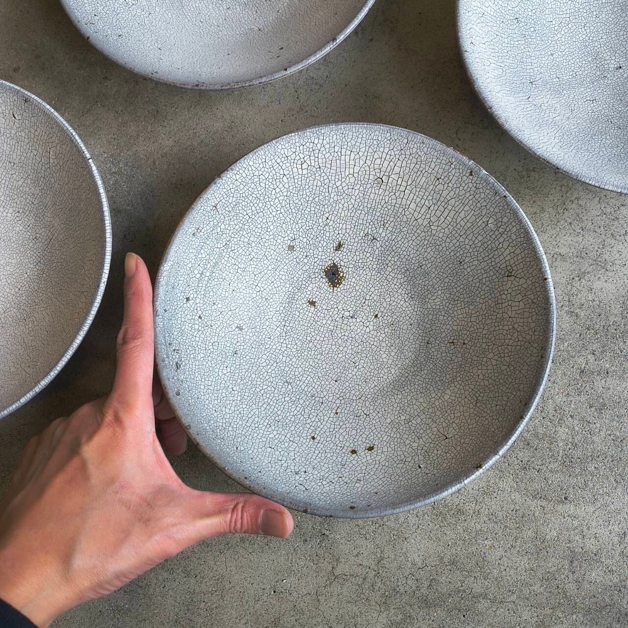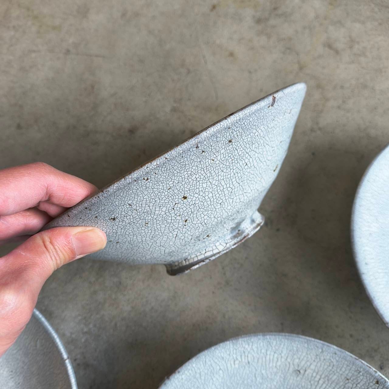 大原拓也 裂粉引 浅鉢L