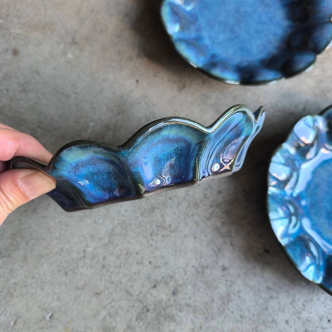 工房 國 輪花皿D 青